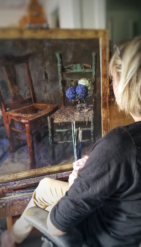 “I am realizing that my style is continually evolving, my goal is to keep it loose and fresh and I’ll work at something, scraping away paint that I’ve put down trying to achieve a particular look and feel.”